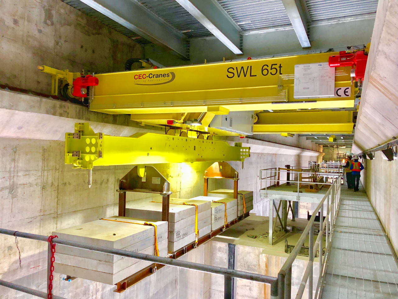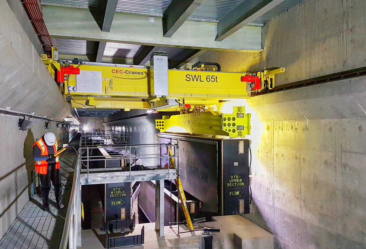 Dammtafelkrane werden in Wasserkraftwerken genutzt, um die Dammtafeln zu manipulieren.
